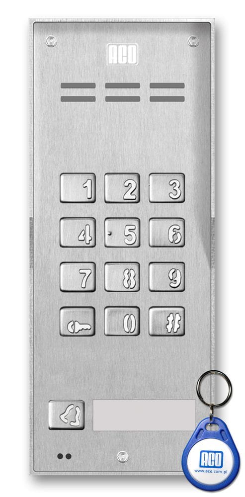 - Domofon cyfrowy z zamkiem szyfrowym, czytnikiem breloków oraz 1 przyciskiem