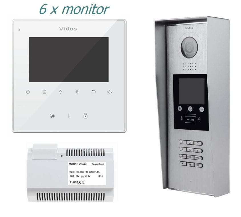 Wideodomofon 6-rodzinny Vidos Duo S1600 M1022W cyfrowy czytnik szyfrator