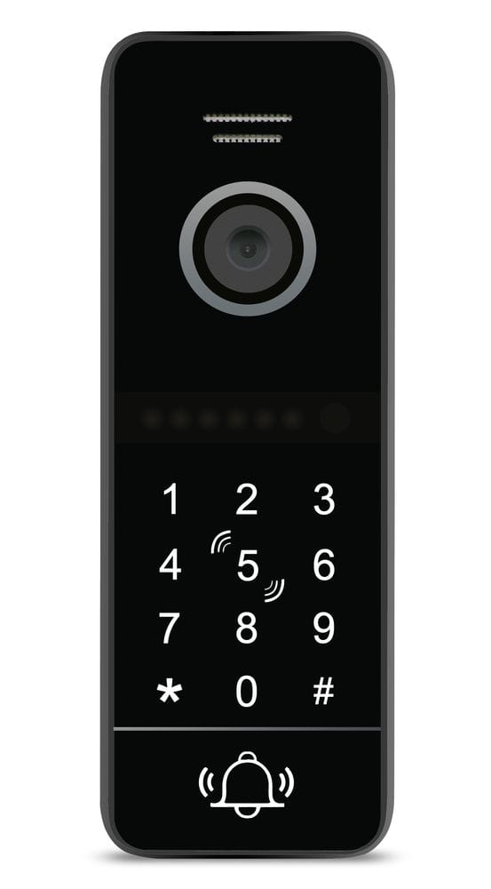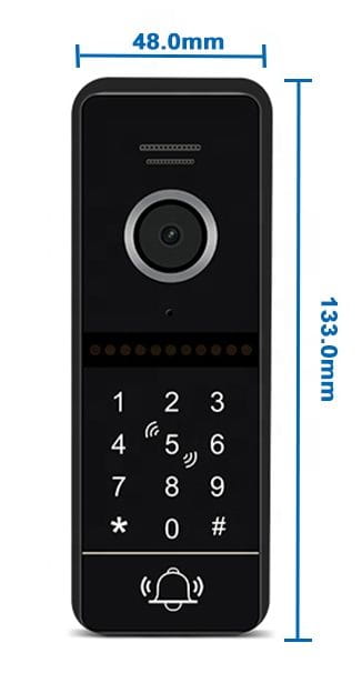 Kamera stacji bramowej posiada szerokokątny obiektyw wysokiej rozdzielczości z podświetlaną klawiaturą, posiada doświetlenie diodami IR (podczerwień) umożliwiające widzenie nocą. Wbudowany szyfrator i czytnik RFID zapewnia łatwy dostęp domowników za pomocą kodu lub kart i breloków zbliżeniowych, szerokość kamery to tylko 48 mm, dzięki czemu możliwy jest montaż nawet na wąskich słupkach. Dodatkowo w zestawie z kamerą znajduje się uchwyt do montażu pod kątem.