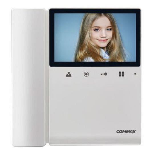 Monitor kolorowy do systemów jedno oraz wielorodzinnych Commax, słuchawkowy. Wyświetlacz LCD 4.3". Sensoryczne dotykowe przyciski, obsługa dwóch kamer (dwa wejścia). Możliwość rozbudowy o dodatkowy monitor lub unifon. Zasilanie 230V AC lub 24V DC. Interkom