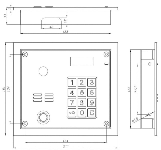 - wymiary - szerokość 211, wysokość, 181, głębokość 33 mm w tym sam panel 5 mm