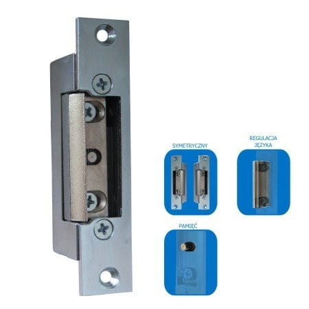 W przypadku typowych modeli, klient przy wyborze elektrozamka musi określić kierunek otwierania sterowanych nim drzwi (lewy-prawy). Elektrozaczep symetryczny posiada zapadkę (język) umieszczony w jednakowej odległości od obu krawędzi obudowy, co sprawia, że można montować zarówno w drzwiach lewych jak i prawych. Eliminuje to konieczność doboru konkretnego rodzaju elektrozamka podczas projektowania kontroli wejścia. Funkcją elektrozaczepu jest blokada zabezpieczonego nim wejścia i jego zwolnienie po podaniu napięcia zasilającego cewkę elektrozaczepu. Sterowanie elektrozamkiem może być realizowane przez system domofonowy, videodomofonowy, kontroli dostępu lub też prosty przycisk zwierny (tzw. „dzwonkowy”).