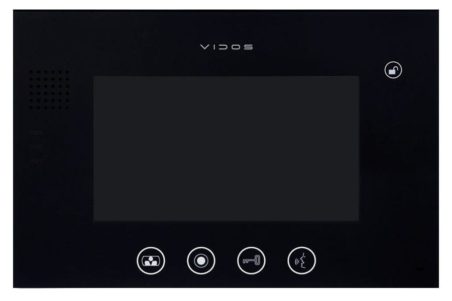 Głośnomówiący, bezsłuchawkowy monitor wideodomofonu. Najpopularniejszy z modeli Vidos, wyróżnia się wyjątkowym designem i funkcjonalnością. Monitor posiada 7″ kolorowy ekran panoramiczny TFT LCD. Przedni panel wykonany z wysokiej jakości tworzywa ‚nano glass’ zapewniającego nowoczesny wygląd i bezpieczeństwo. Zaprojektowany i wykonany z wielką precyzją i dbałością o detale. M670 posiada dotykowe klawisze sterujące. Obsługuje 2 stacje bramowe (2 stacje lub 1 stacja + kamera CCTV). Możliwy podgląd z kamery. Monitor wyposażony jest w funkcję interkomu i przekazywania rozmowy. System można rozbudować o 3 dodatkowe, dowolnie wybrane monitory lub unifony. Sterowanie elektrozaczepem i bramą automatyczną!! Kolor obudowy: CZARNY