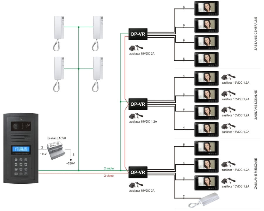 2 x rozdzielacz + zasilanie do monitorów
