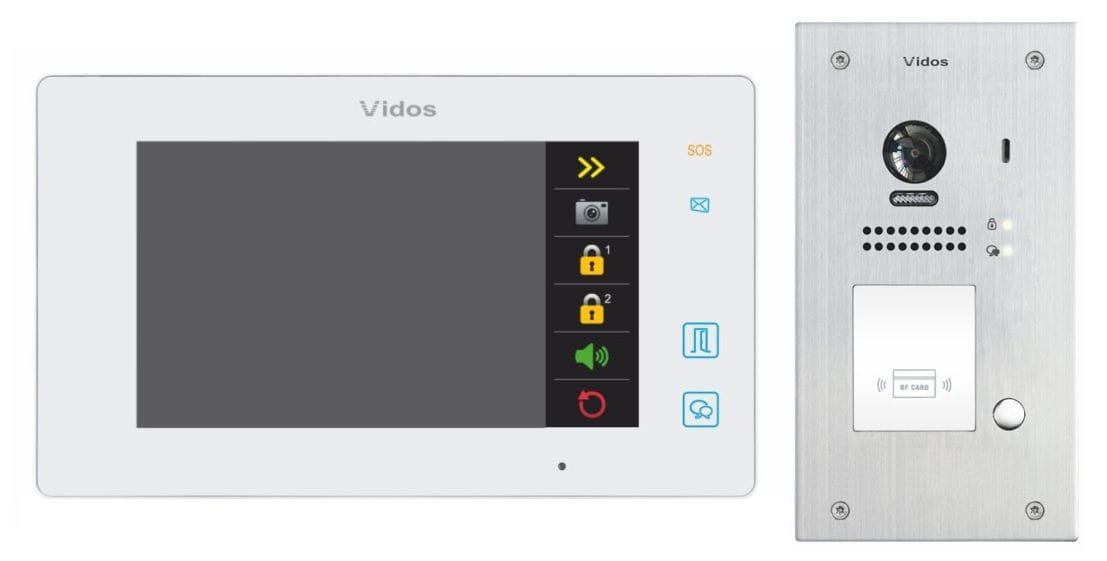 Wideodomofon dwużyłowy Vidos M1021W / S1201A podtynkowy czytnik