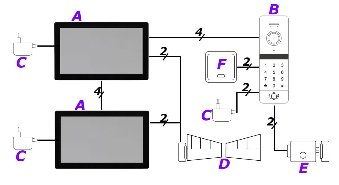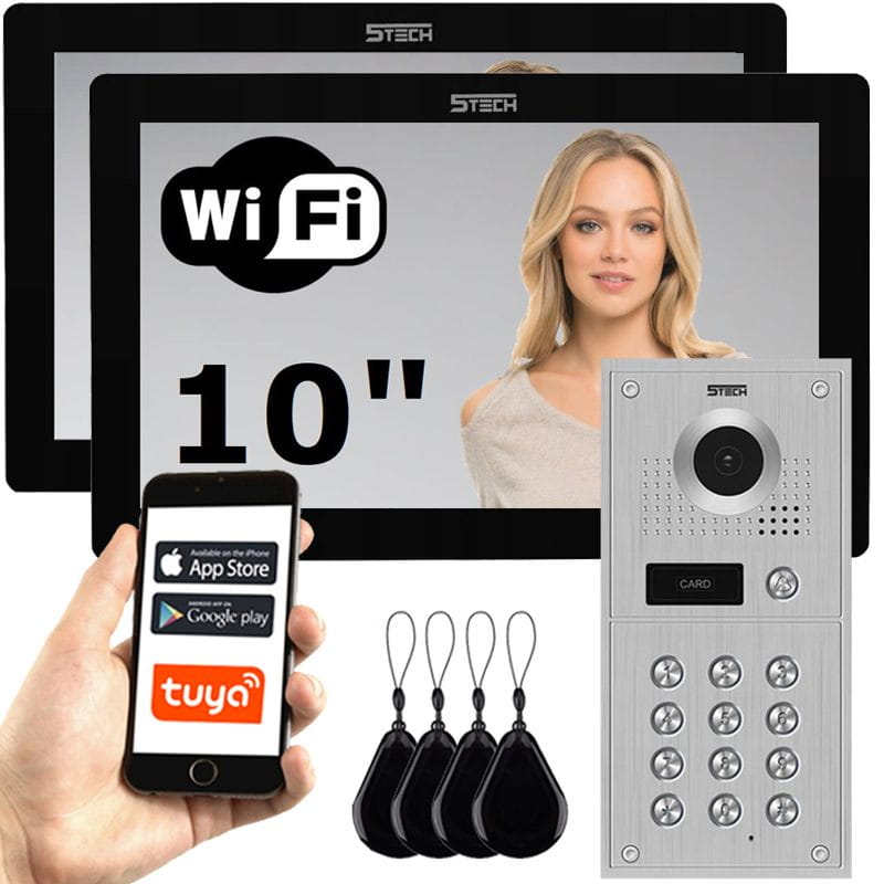 Jednorodzinny zestaw wideodomofonowy z dwoma monitorami marki 5tech z funkcją połączenia na telefon, smartfon.