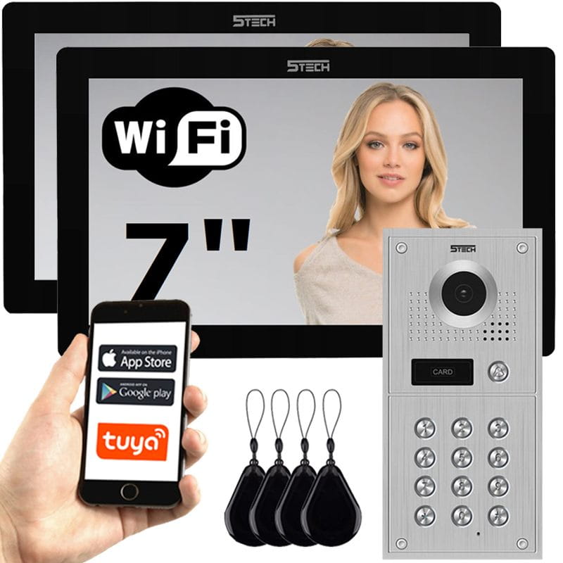 Jednorodzinny zestaw wideodomofonowy z dwoma monitorami marki 5tech z funkcją połączenia na telefon, smartfon.