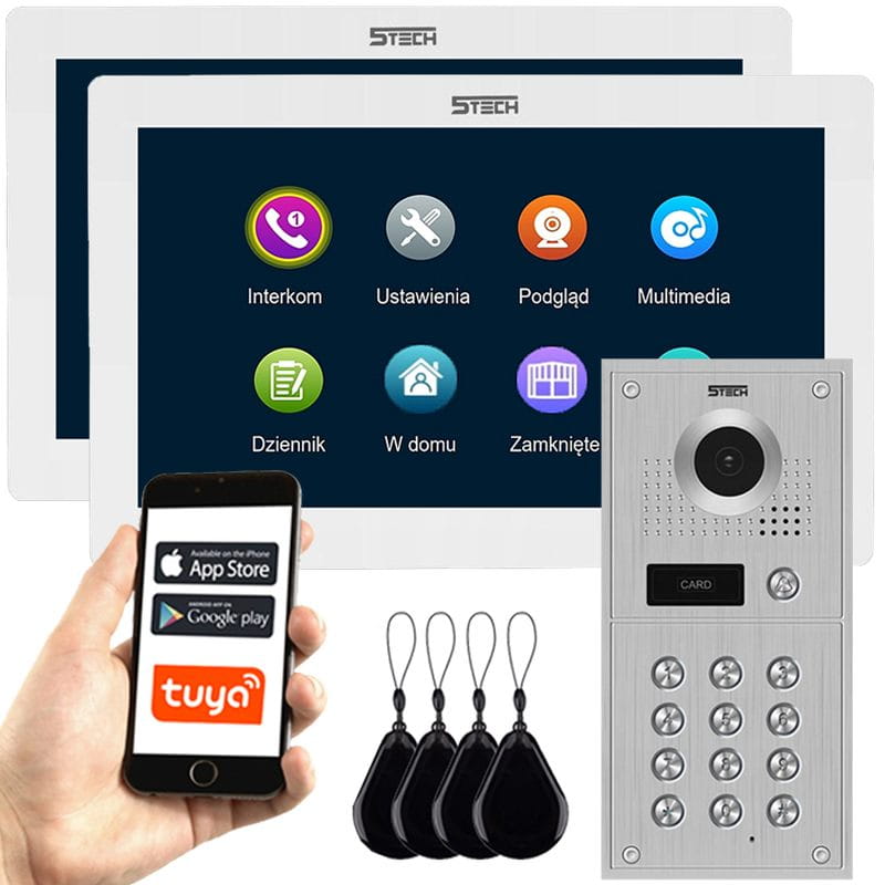 Jednorodzinny zestaw wideodomofonowy z dwoma monitorami marki 5tech z funkcją połączenia na telefon, smartfon.