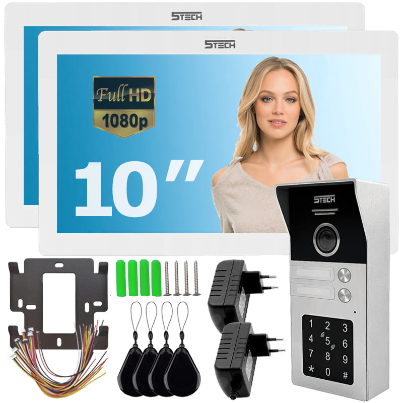 Dwurodzinny zestaw wideodomofonowy marki 5tech, model przeznaczony dla użytkowników oczekujących najnowszych rozwiązań ale bez potrzeby połączenia wideodomofonu z internetem, oraz gdy nie jest wymagana obsługa wideodomofonu przez smartfon