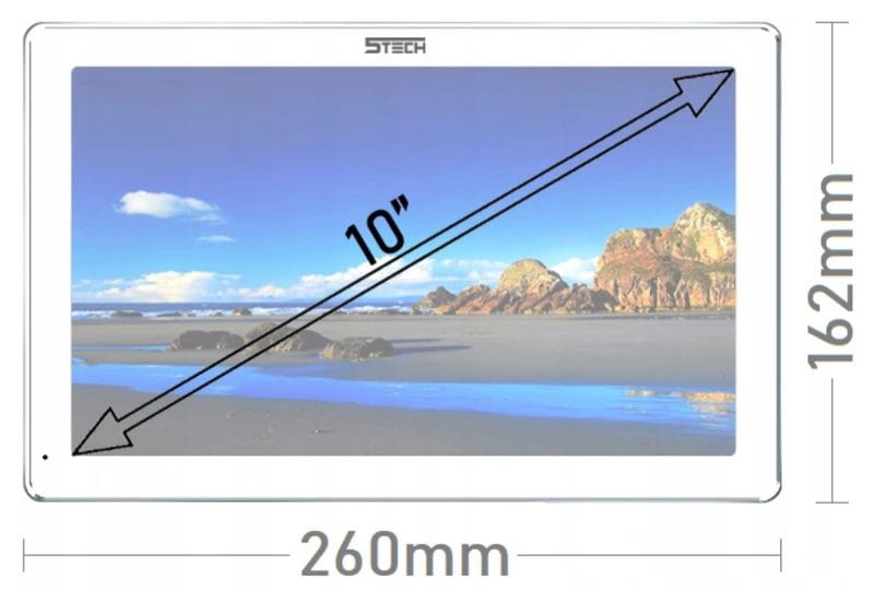 - Wyświetlacz dotykowy LCD 10" z obsługą kamer AHD, Full HD