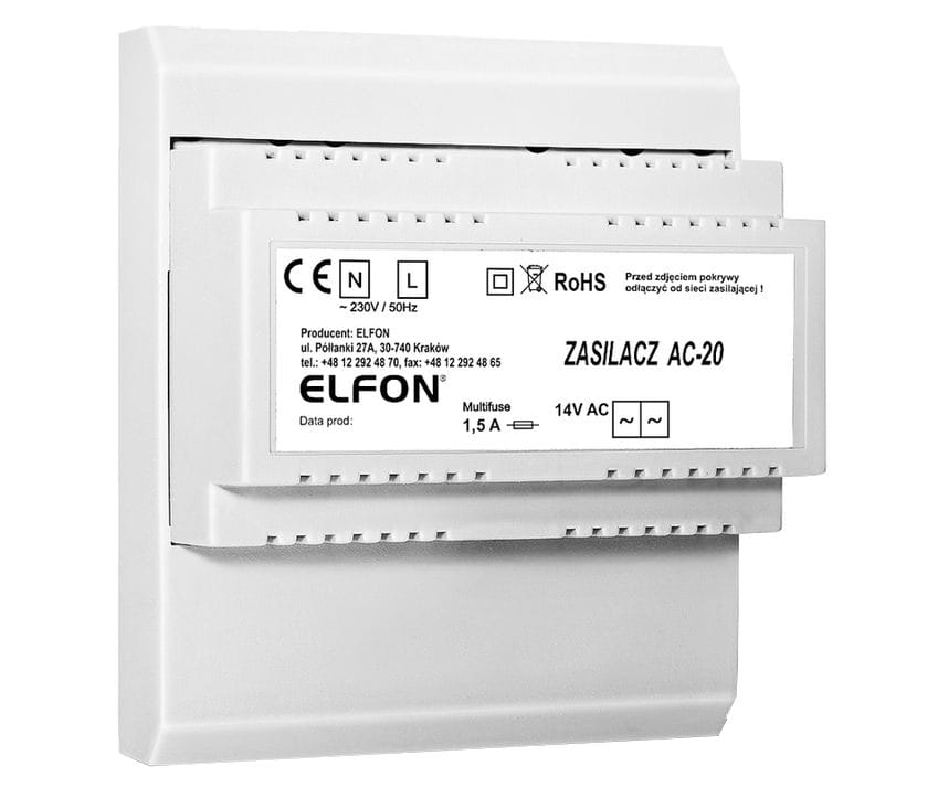 Zasilacz znajduje się w obudowie typu EURO, przeznaczonej do instalacji na szynie w szafce elektrycznej, wyposażony jest w ramkę zakrywającą zaciski przewodów, pozwala to na bezpieczny montaż zasilacza bez dodatkowej obudowy (np. na ścianie).