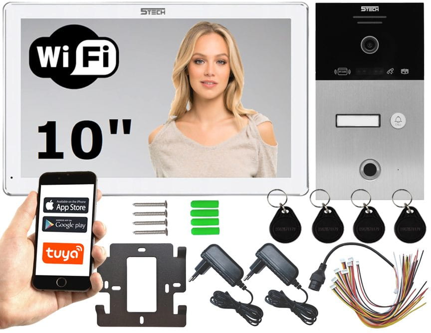 Ultra cienki 10 calowy monitor z wyświetlaczem dotykowym + Stacja bramowa z podświetlanym przyciskiem Kąt widzenia kamery poziomy 140°. Wideodomofon za pośrednictwem darmowej aplikacji Tuya Smart daje nam możliwość obsługi z dowolnego miejsca na świecie.