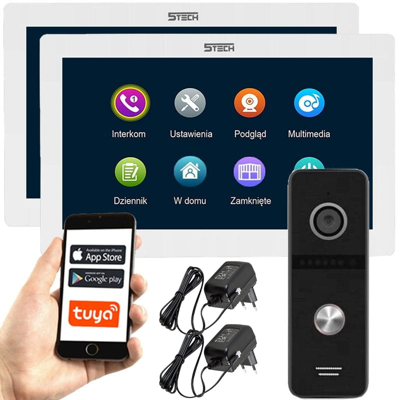 Jednorodzinny zestaw wideodomofonowy z dwoma monitorami marki 5tech z funkcją połączenia na telefon, smartfon, kartą Wi-Fi